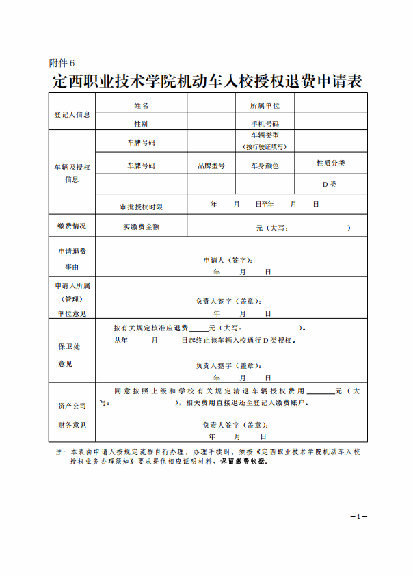 定西职业技术学院机动车入校授权退费申请表.pdf
