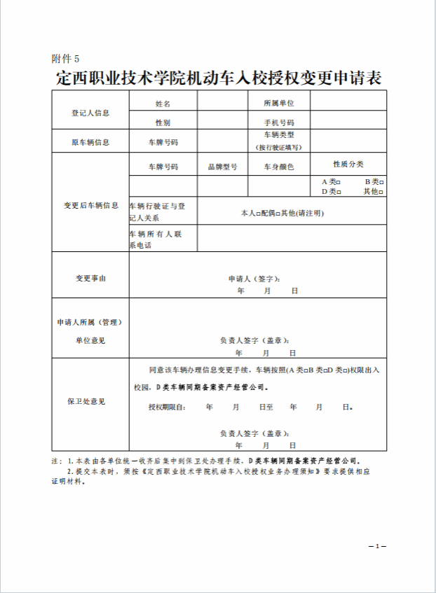 定西职业技术学院机动车入校授权变更申请表.pdf